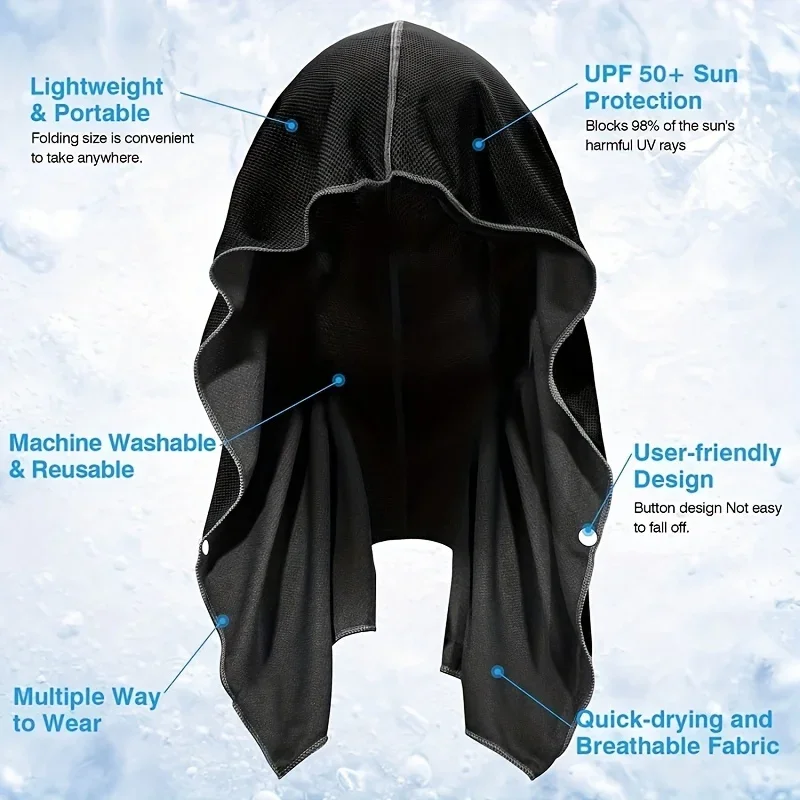 U Cooling Hoodie Towel Beach Camping Gym Building Sun Protection Quick Drying Sports Cooling Towel Headband